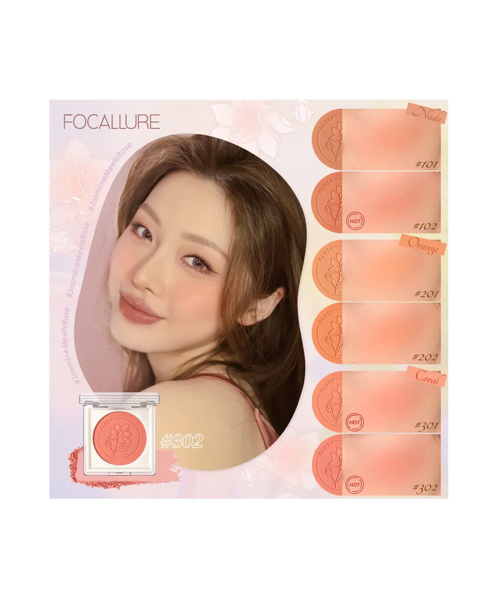 Natural Finish: Jasmine Mix Rose Essential Oil are added to the blush. Select natural rose and jasmine petals to be distilled into essential oils. The powder is pressed through careful technology, adding essential oils, make the blush have rose and jasmine fragrance. Both rose and jasmine have the function of moisturizing and soothing the skin, and can be used on sensitive skin.