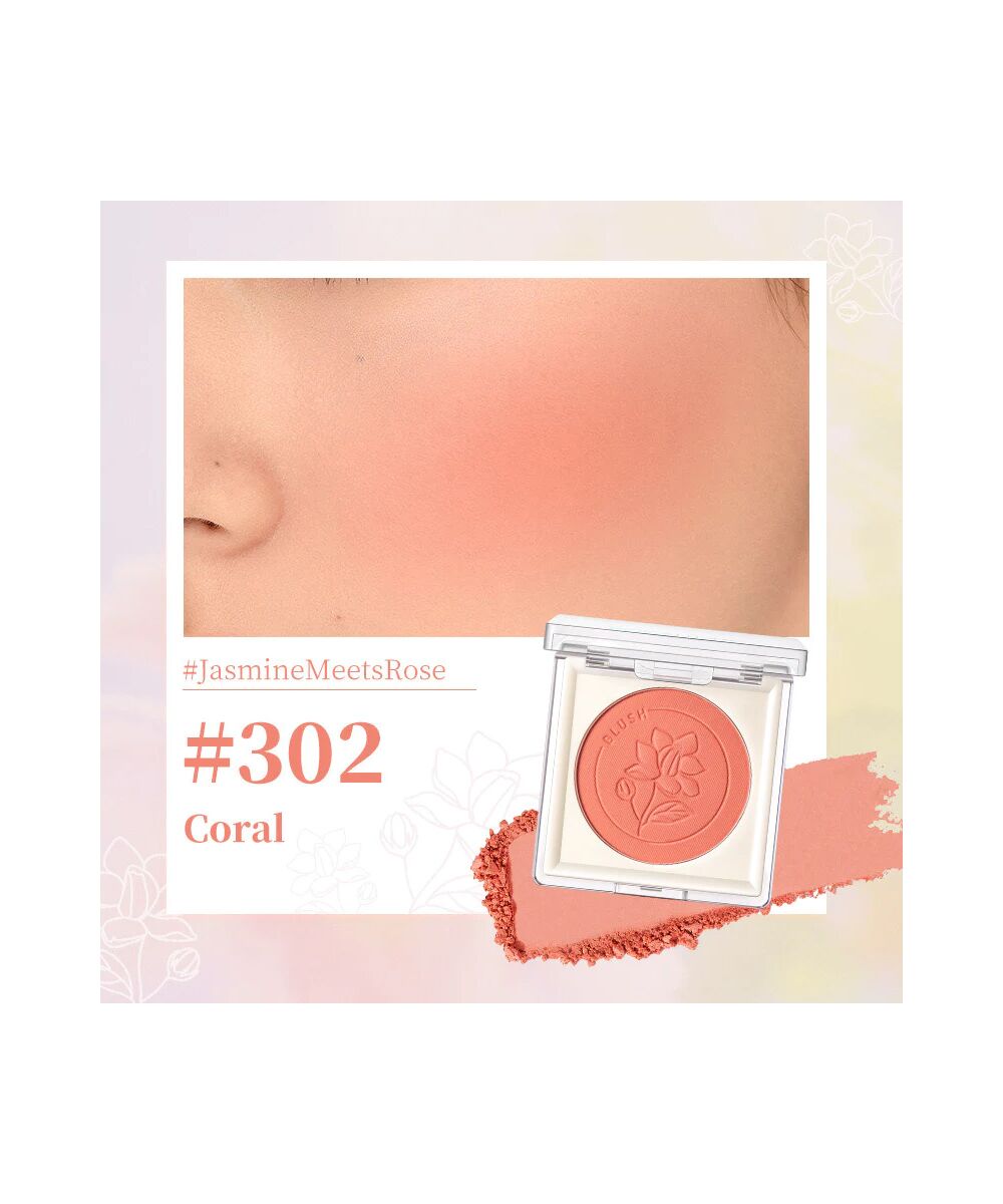 Natural Finish: Jasmine Mix Rose Essential Oil are added to the blush. Select natural rose and jasmine petals to be distilled into essential oils. The powder is pressed through careful technology, adding essential oils, make the blush have rose and jasmine fragrance. Both rose and jasmine have the function of moisturizing and soothing the skin, and can be used on sensitive skin.