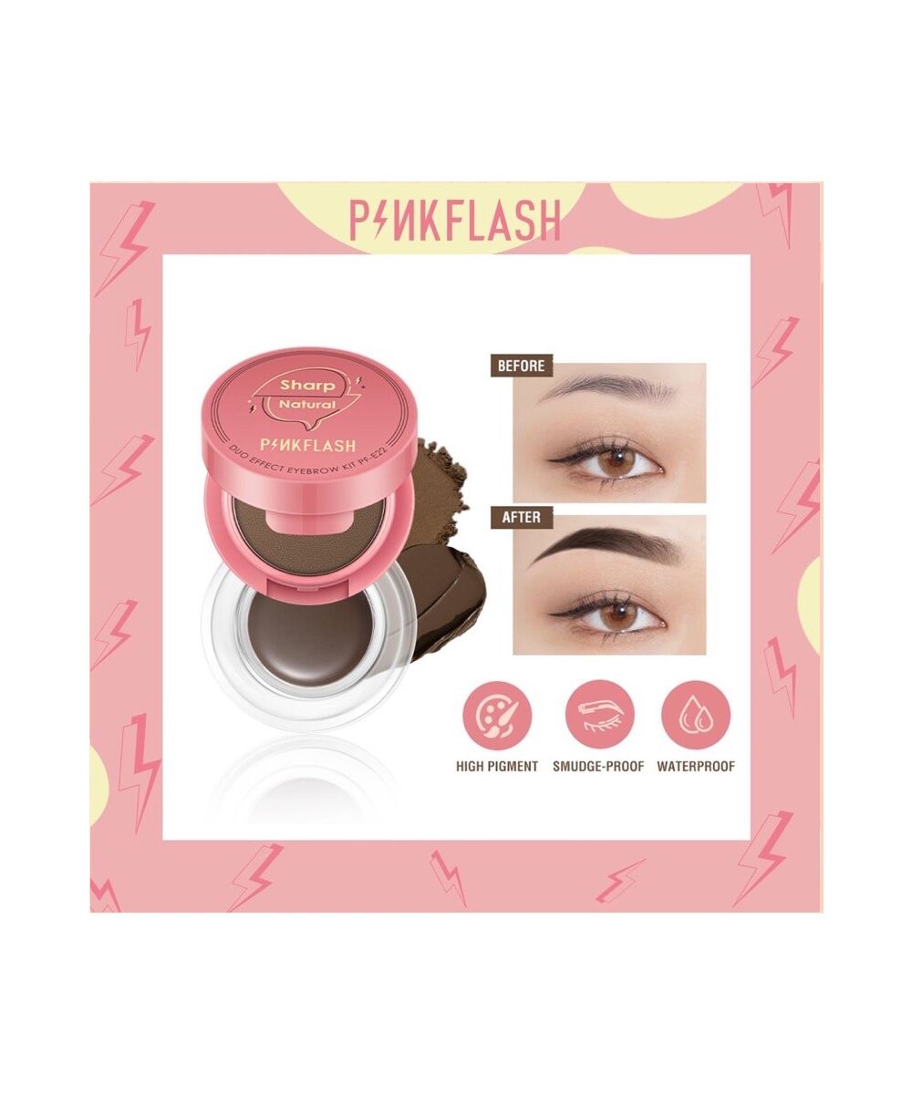 PINKFLASH 2 in 1 duo effect Eyebrow Cream & Powder Effortlessly gives a natural, true-to-life brow effect A silky brow cream and a silky powder.