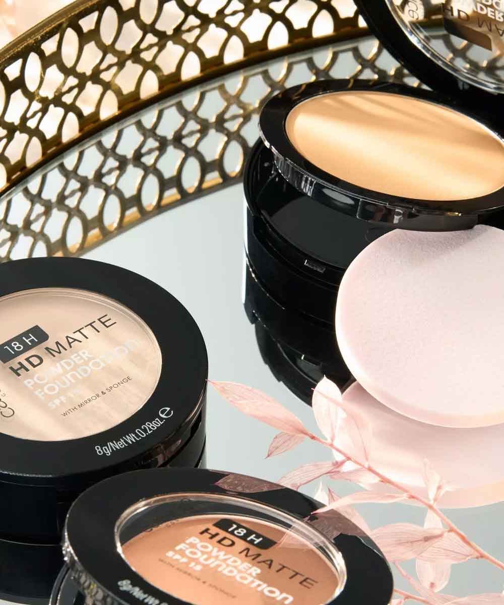 ودعي لمعان البشرة! توفر بودرة كريم الأساس 18 ساعة اتش دي مت تغطية مثل كريم الأساس السائل مع تلميع بشرتك مثل البودرة. يدوم تأثير المت حتى 18 ساعة، وكريم أساس البودرة مقاوم للعرق والتلطخ. يتكون الملمس الفريد من أصباغ عالية التقنية في تركيبة بودرة خفيفة مضغوطة قابلة للذوبان. يبدو خفيف الوزن عمليًا على البشرة ,ويمنحك بشرة ناعمة بشكل واضح مع لمسة نهائية طبيعية. إضافة أخرى: مع عامل الحماية من الشمس بدرجة 15، يوفر المنتج حماية خفيفة من الأشعة فوق البنفسجية. تُعد المرآة والإسفنجة المدمجتين مثاليتين لمكياج الصباح أو المكياج سريع أثناء التنقل حيث تُسهّل وضع كريم الأساس البودرة.