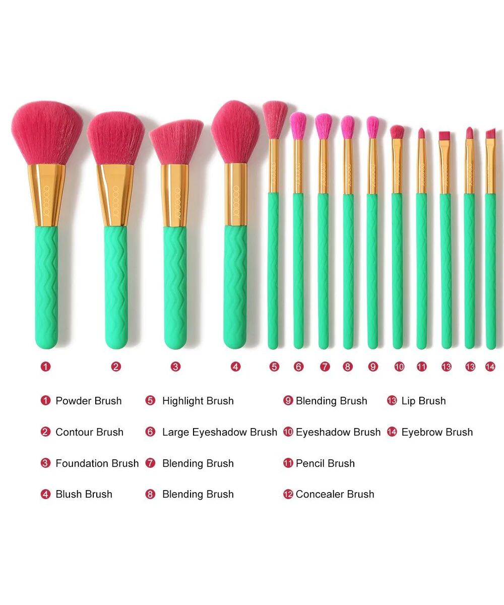 دوكولور، مجموعة فرش مكياج، الأخضر، 14 قطعه