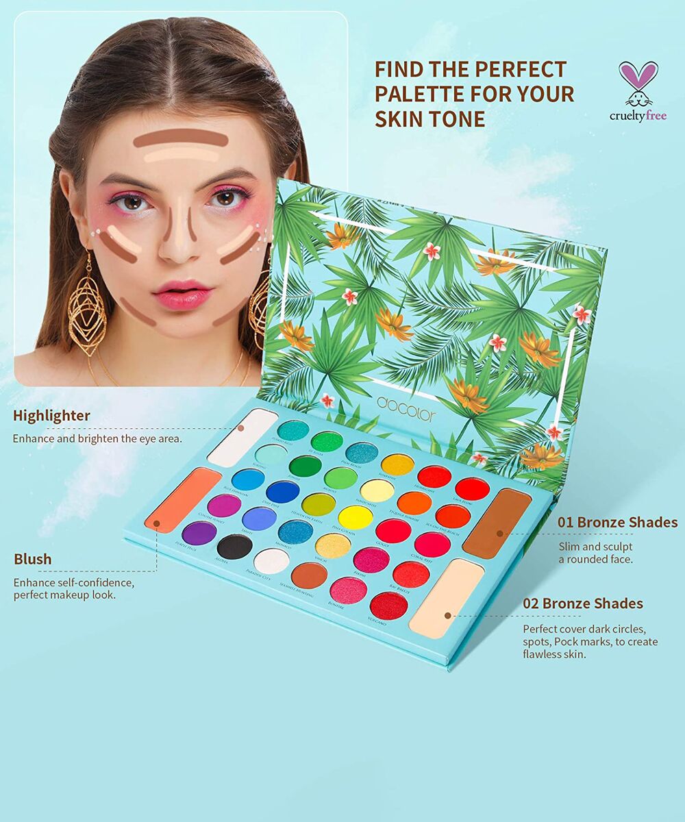 18 لونًا من ظلال العيون المطفية و12 لونًا لامعًا، وبودرة البرونزر وباليت الهايلايتر. مثالية لعمل أي مكياج رائع.