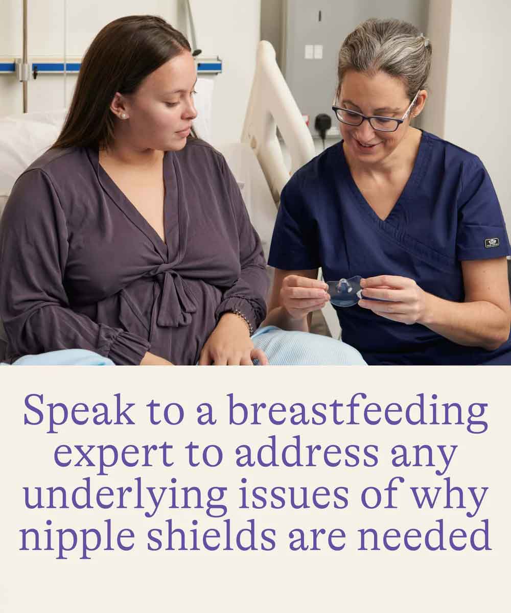 يجب استخدام جميع واقيات الحلمة تحت إشراف أخصائي الرضاعة الطبيعية.