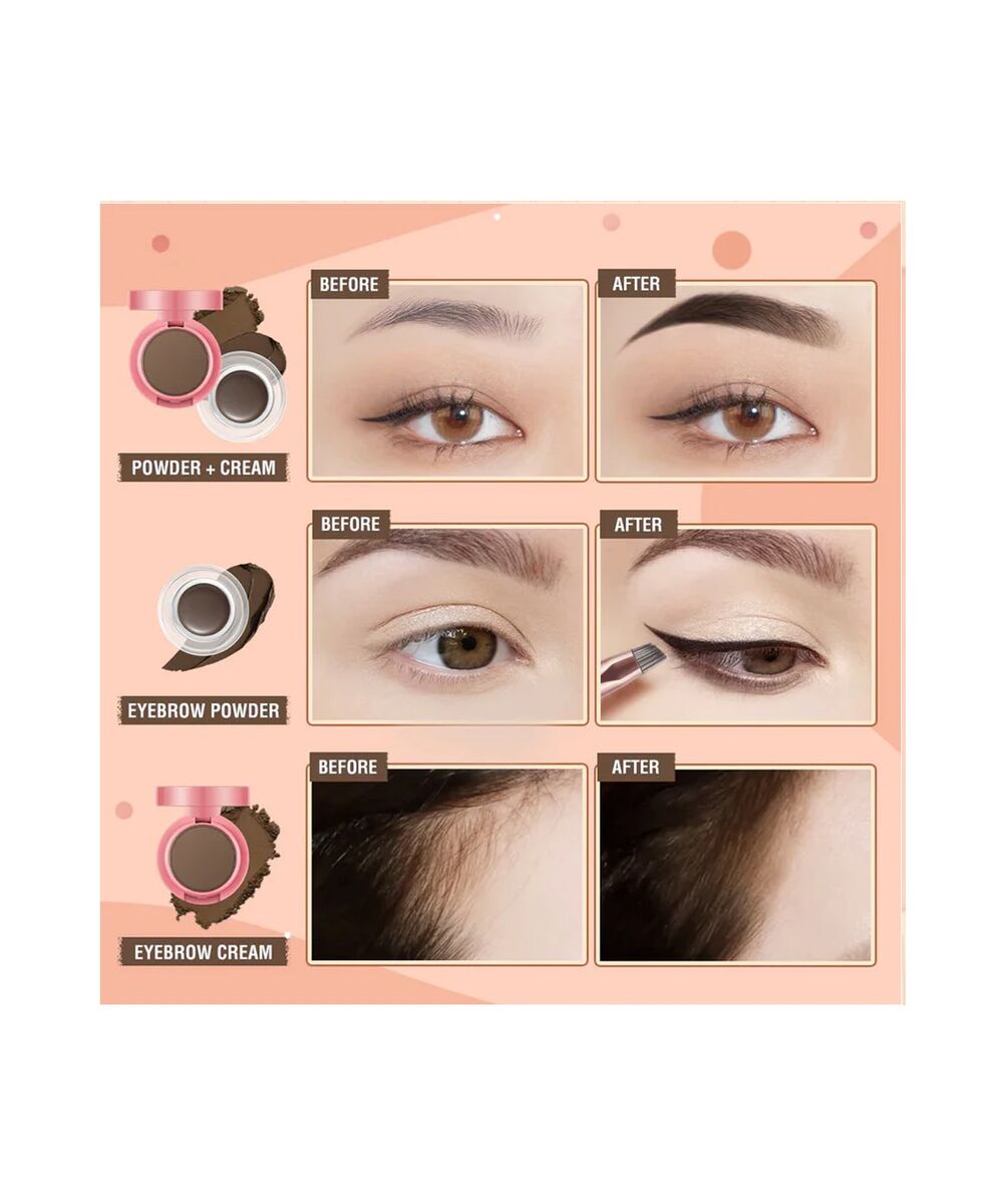 بينك فلاش 2 في 1 كريم ومسحوق للحواجب بتأثير ثنائي يمنحك مظهرًا طبيعيًا وواقعيًا للحواجب ، كريم حريري للحواجب وبودرة حريرية.